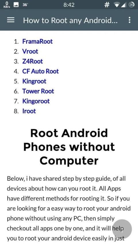 Akar android tanpa pc telah diuji akar tanpa metode pc untuk hampir semua ponsel android.