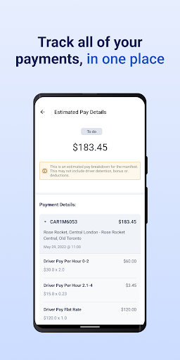 Secara instan menerima manifes dari operator dan memperbarui bahkan saat Anda berada di jalan.Potong dokumen sambil dapat menangkap tanda-e, tambahkan aksesorial dan ambil foto dokumen dan pengiriman.