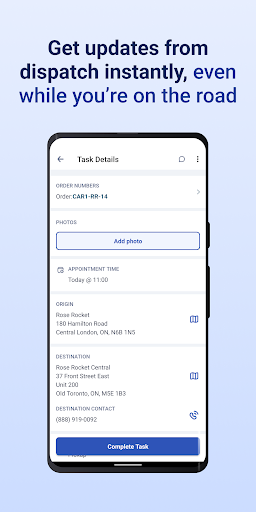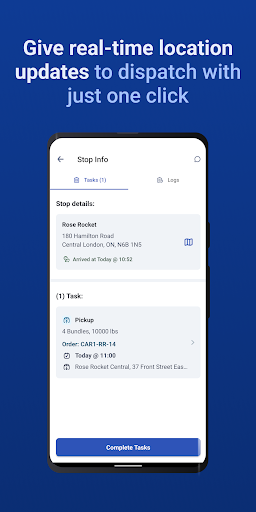 • Kirim Pembaruan Pesanan Waktu Nyata: Dengan satu klik Anda dapat mengkomunikasikan kemajuan Anda diberhenti tanpa panggilan telepon yang mengganggu.