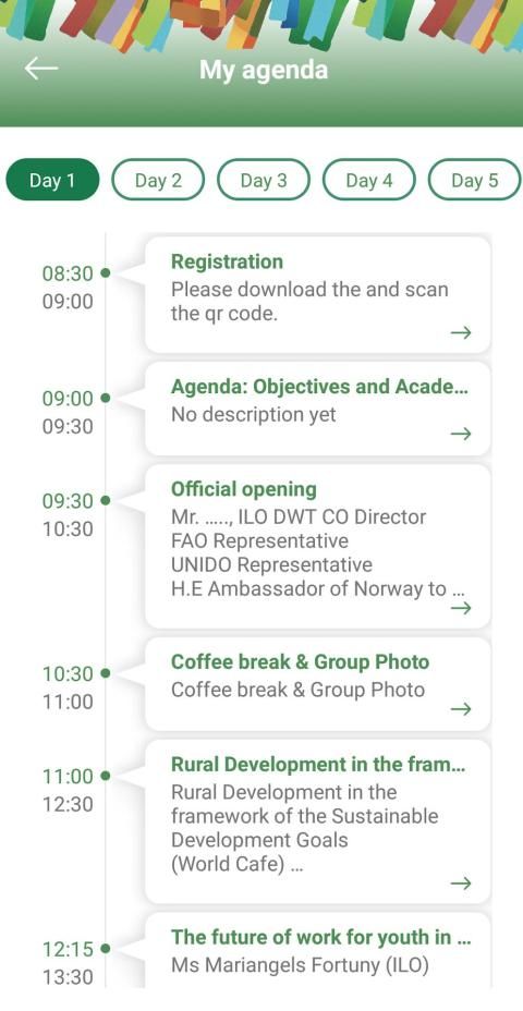 - Agenda terperinci dengan informasi tentang setiap sesi