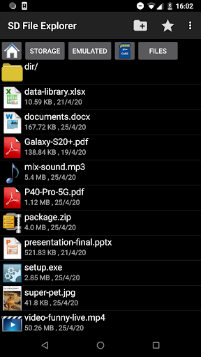 Aplikasi ini memungkinkan Anda menelusuri kartu SD dan penyimpanan internal perangkat Anda.Anda dapat membuat, menyalin, memindahkan, mengganti nama, dan menghapus file dan folder.Selain itu, Anda dapat mengompres dan mendekompres file ZIP.