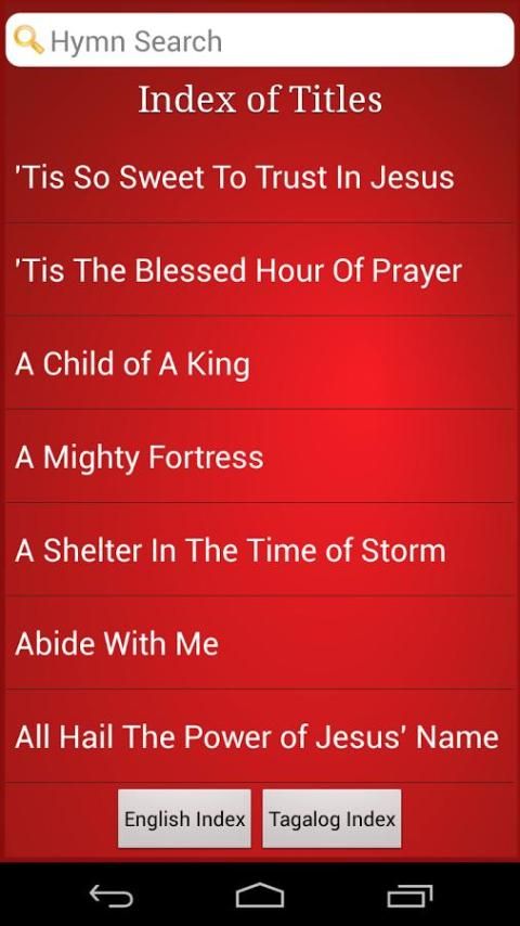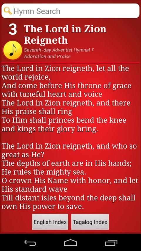 Saya telah mencari sebuah aplikasi yang memiliki daftar yang sama dari lagu-lagu kita cintai SDA Hymnal: Phil. Edition.