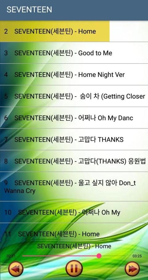 Aplikasi yang sangat baik untuk artis Seventeen / SEVENTEEN termasuk lagu-lagu eksklusif dan indah. Lagu ini telah sukses tanpa internet dan kesuksesan besar