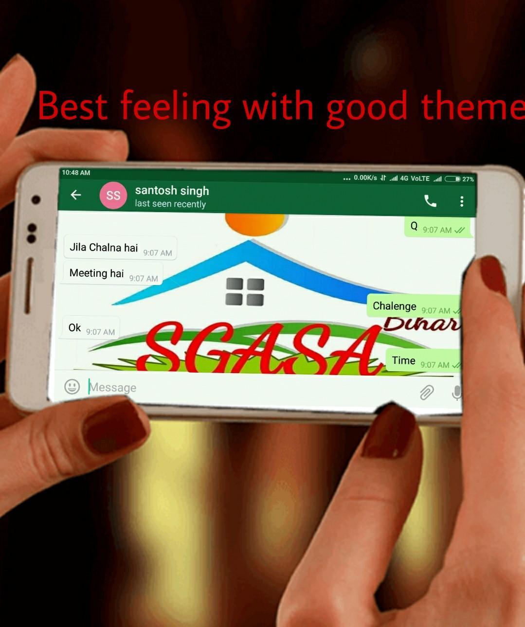 "State Gramin Awas Service Association, Bihar" present to you "SGASA Messenger" a free messaging App. It is functioning for Android and other smart phones. It consists messaging like textual chat, photos, videos and audios. It works on 2G, 3G, 4G & WLAN as available.