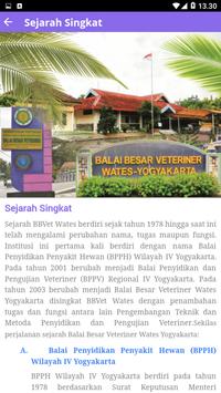 Aplikasi android ini mendekatkan BBVet Wates dengan berbagai Tupoksi ,baik investigasi ,Pengujian dan Pengembangan metode laboratorium kepada para pelanggan dan pengguna jasa Balai Besar Veteriner Wates
