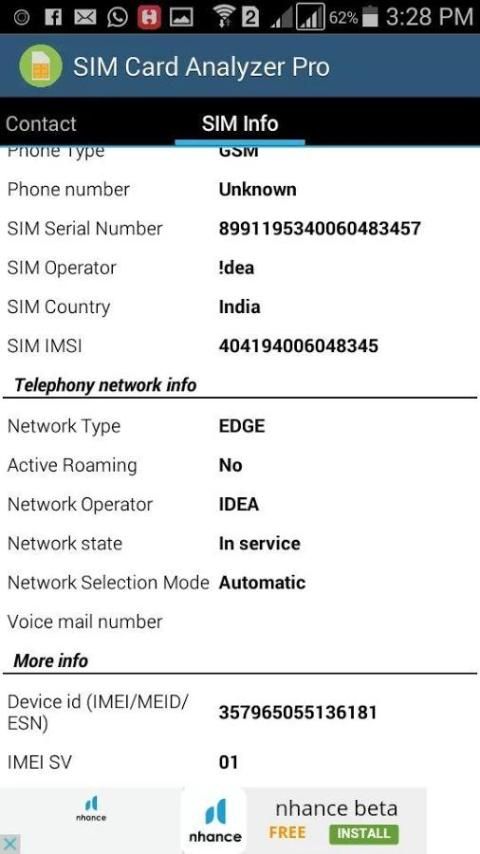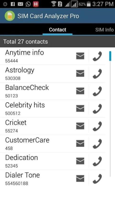 SIM Card Analyzer is a tiny tool that reads your SIM card and give you many helpful information. It also help you to manage contacts in you SIM Card, you can view all your contacts stored on SIM Card, create a new contacts (store to SIM card), modify a contact or delete contact(s).