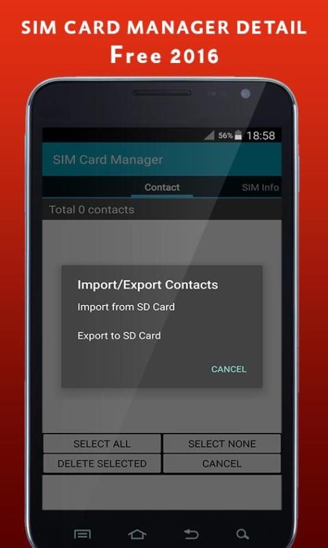 sim card manager 2016 mungkin menjadi alat kecil yang membaca kartu sim Anda dan memberikan Anda banyak sekali informasi yang berguna. Hal ini juga membantu Anda untuk mengelola kontak di Anda sim card, Anda akan membaca semua kontak Anda berpegang pada kartu sim, menghasilkan kontak pengganti, memodifikasi kontak atau menghapus kontak (s).