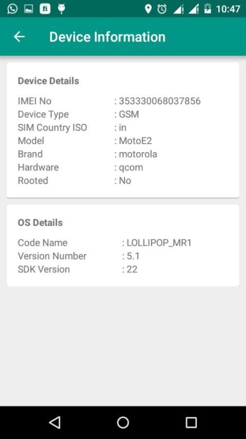 Detail perangkat: IMEI, Type, Model, Produsen, Apakah Berakar, Hardware, OS Detail dll