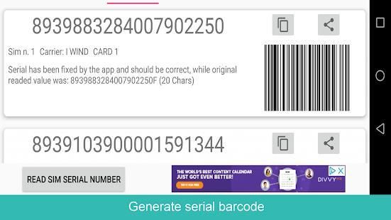 - Fast and smart app that reads sim card serial number, gives you the barcode (very useful for the store employees) and gives you the possibility to copy or share your sim serial number.