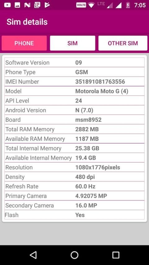 Informasi telepon Anda seperti nomor IMEI, Telepon Jenis, Versi, API Level, Rincian memori dan lebih akan tersedia untuk Anda.