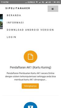 Adalah Aplikasi untuk membantu calon tenaga kerja untuk pendaftaran AK1 (Kartu Kuning) dan pendaftaran Balai Latihan Kerja.