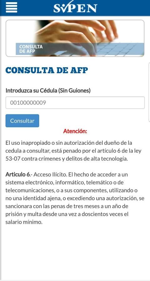 La Superintendencia de Pensiones es una entidad estatal, autónoma, con personalidad jurídica y patrimonio propio, que a nombre y representación del Estado Dominicano ejerce la función de velar por el estricto cumplimiento de la Ley 87-01 y sus normas complementarias, de proteger los intereses de los afiliados, de vigilar la solvencia financiera de las Administradoras de Fondos de Pensiones (AFP) y de contribuir a fortalecer el Sistema Previsional Dominicano.
