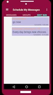 Menambahkan pesan dijadwalkan baru hanya dengan memilih tanggal, waktu, nomor telepon dan teks. Anda memiliki pilihan untuk mengirim SMS harian atau sekali pada tanggal tertentu. Anda dapat mengaktifkan sementara atau menonaktifkan SMS terjadwal tertentu atau sepenuhnya menonaktifkan pengiriman SMS.
