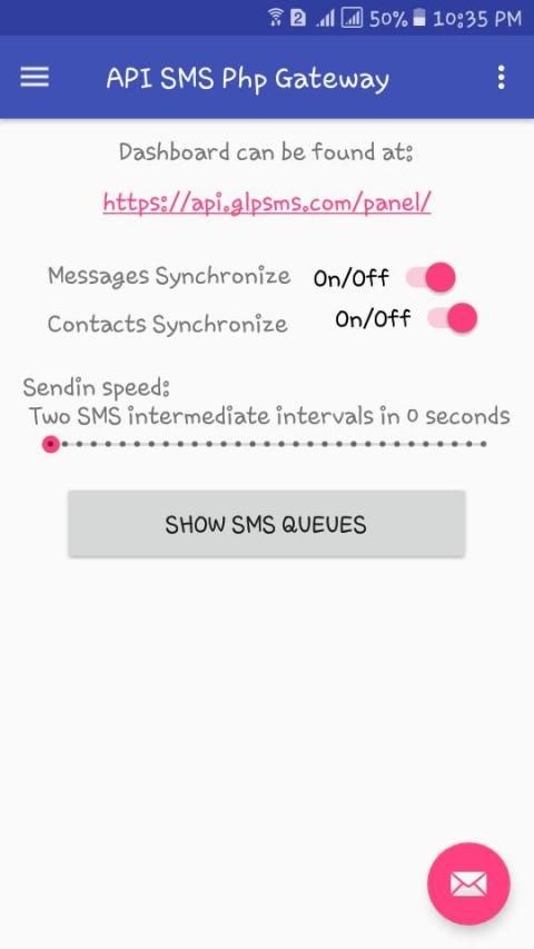 Aplikasi API SMS PHP Gateway memungkinkan sinkronisasi SMS dan kontak dengan aplikasi web api sms php gateway desktop (api.glpsms.com).