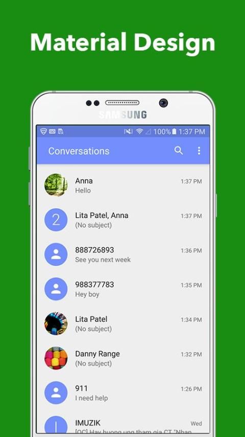 SMS, MMS - Messenger pro adalah yang terbaik menyesuaikan utusan app dengan tema yang tak terhitung jumlahnya, font, wallpaper, ringtone dan semua yang Anda inginkan. Sepenuhnya menyesuaikan dengan Anda! Kirim wajah lenny, stiker & pesan teks GIF via SMS Messenger. Mengirim pesan lucu teks, SMS, MMS, GIF dan pesan emoji. Sebuah SMS utusan aplikasi lucu untuk menggantikan utusan aplikasi stok!