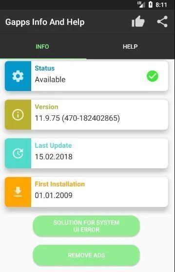 Aplikasi ini memberikan Anda informasi mengenai versi diinstal dan membantu Anda untuk memperbaiki "Sayangnya, com.google.proccess.gapps proses telah berhenti" pesan kesalahan.