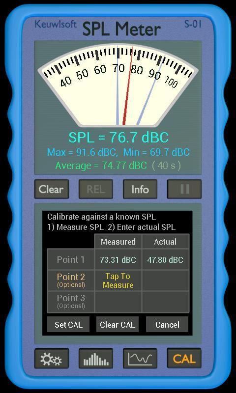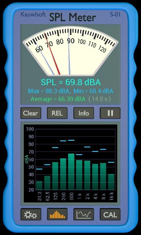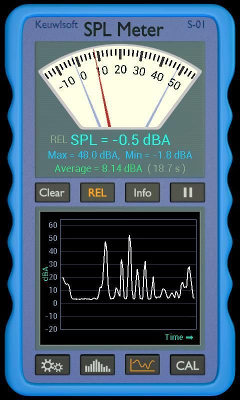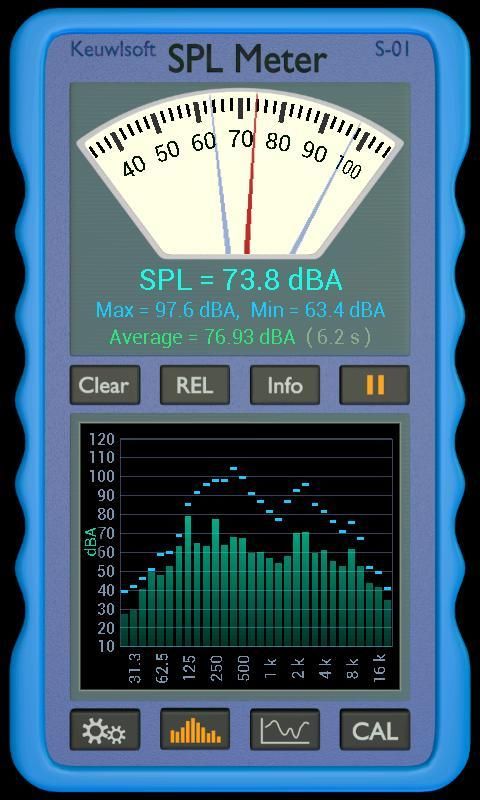 Averaging of SPL, Clear and Pause buttons.