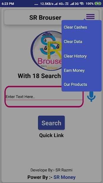 The SR Brouser Is Developed For Searching Data With Different Search Engines ,The SR Brouser Is The First Fast Brouser That's Run On Slow Internet Also Besounse In This Brouser We Not Created Many Data But It's Simple And Fast Brouser You Can Brouser Fastly then All