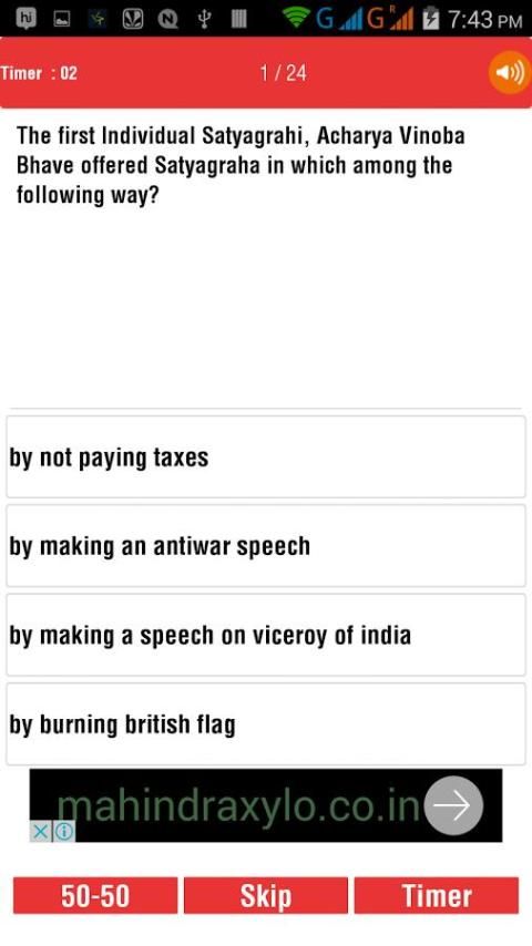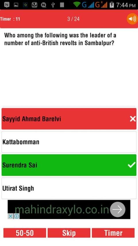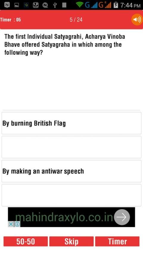 (1) 50-50 Option :: Sementara Mencoba Kuis, Anda dapat menggunakan 50-50 pilihan untuk menghilangkan dua pilihan. Nya