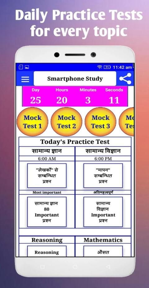 This is package of Practice sets or mock tests. It will help users to save their TIME and they can do more preparation for their Exams. It is based on CBT ( Computer based test) and online mode exams. By using this app, user can avoid understanding issues happened at the time of examination. User can get more practice sets by visiting our website. For any exam, user can get related practice sets of SMARTPHONE STUDY.