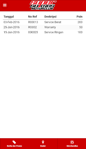 Tunjukan bahwa anda sebagai member SSMC melalui aplikasi ini ketika berkunjung untuk melakukan service motor Anda di dealer PT. Super Sukses Motor dan dapatkan diskon-diskon menarik, Kumpulkan Point Reward Anda sebanyak-banyaknya dan tukarkan dengan berbagai hadiah menarik di dealer PT. Super Sukses Motor.