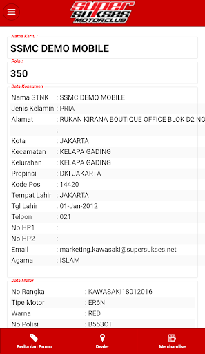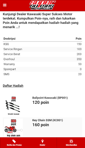 untuk memberikan layanan kepada Anda yang tergabung sebagai member SSMC berupa informasi Point Anda, Remainder Service Gratis Anda, Lokasi Dealer SSM Kawasaki yang terdekat dari lokasi Anda, Berita dan Promo yang menarik untuk seluruh customer setia PT. Super Sukses Motor.
