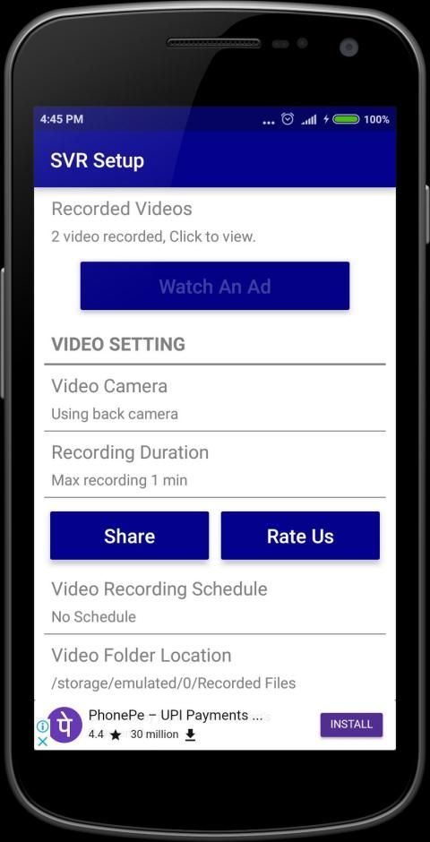 SVR juga menyediakan untuk mengatur lokasi file rekaman Anda. Dalam bahwa Anda dapat melihat video yang direkam.