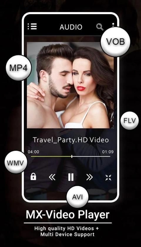 HD video player plays and supports all type of videos and audio files like AVI, 3GP, MKV, TS, MPG , M4V, MOV, MP4, WMV, RMVB, FLV and MP3. You use this