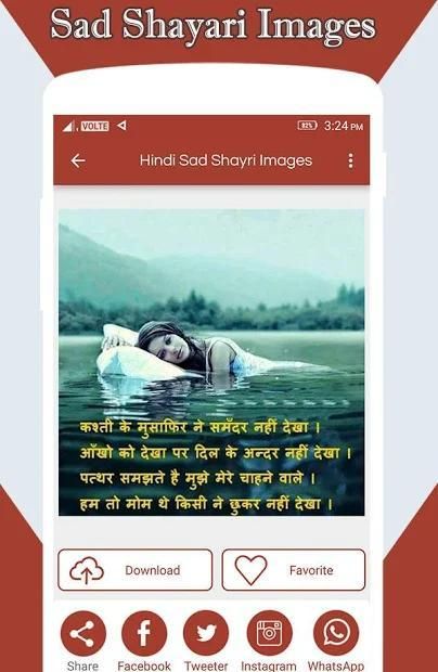 Hindi Sad Shayari Images is Collection of Hindi Sad Shayari Images with Good shayari this app is develop specially for share