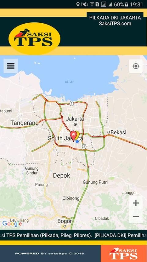 - Tampil icon peta Suara TPS (Merah) & Saksi TPS (Kuning)
