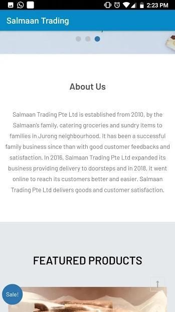 Salmaan Trading Pte Ltd is established from 2010, by the Salmaan’s family, catering groceries and sundry items to families in Jurong neighbourhood. It has been a successful family business since than with good customer feedbacks and satisfaction. In 2016, Salmaan Trading Pte Ltd expanded its business providing delivery to doorsteps and in 2018, it went online to reach its customers better and easier. Salmaan Trading Pte Ltd delivers goods and customer satisfaction.