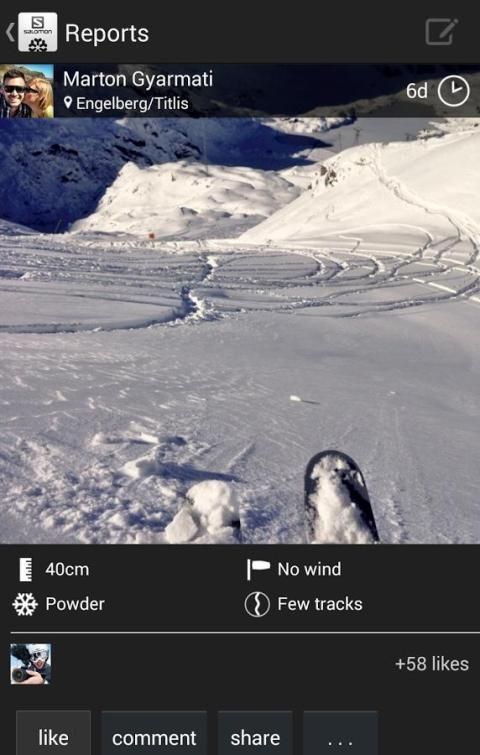 Membuat teman Anda iri adalah bagian dari kesepakatan, melaporkan kondisi di tempat, akhirnya menghasilkan real-time perkiraan salju paling maju ada. Snap gambar dan menentukan jumlah salju dan berbagi dengan pemain ski lain sebagai yang paling "membuat teman Anda iri" senjata. Berbagi adalah peduli...