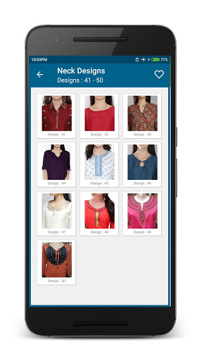 Salwar Neck Designs app helps to select latest and trendy designs for salwars, churidhars, kurtas and kurtis. This app includes various range of design from which you can choose, depending upon your taste and body type.