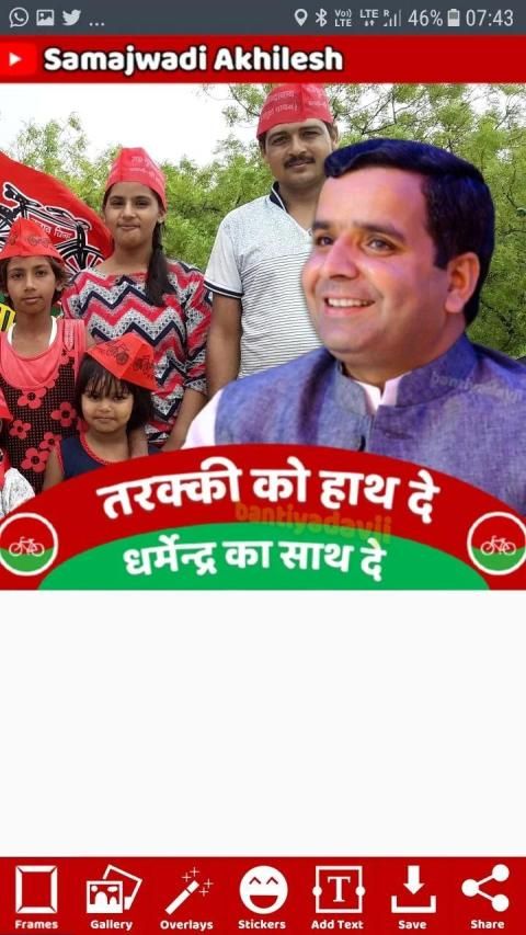 Put a lot of beautiful SP stickers and Samajwadi Party badges on your photo