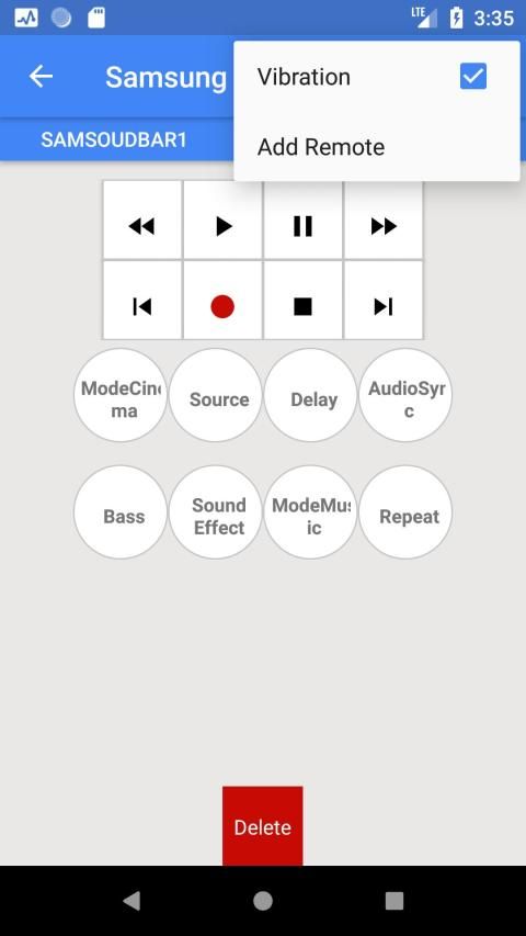 Setelah Remote Control Samsung Sound Bar dikonfigurasi dapat dengan mudah ditemukan di "Perangkat Tersimpan".