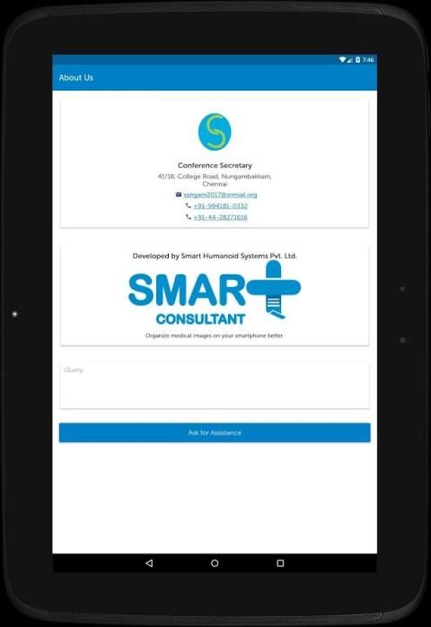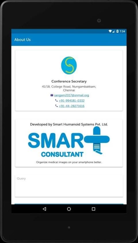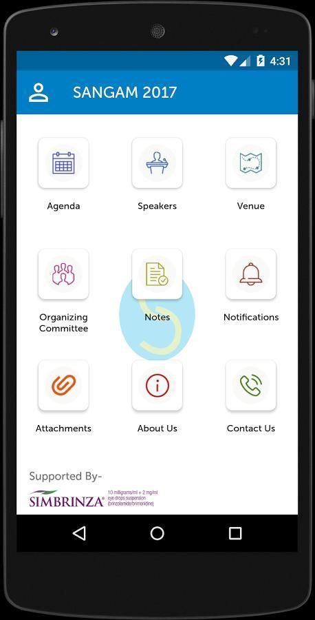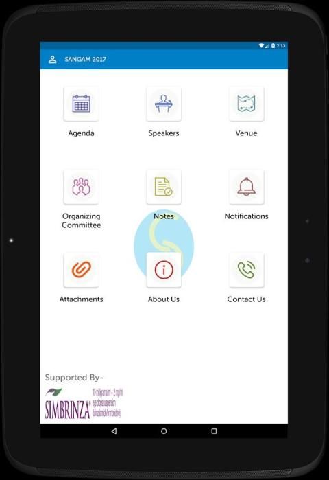 Aplikasi konferensi Sangam 2017 berfungsi sebagai e-brosur yang memberikan rincian jadwal dan speaker. delegasi terdaftar dapat membuat catatan, komentar dan menilai setiap sesi.