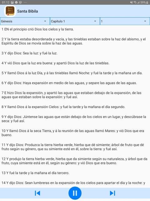 Selalu bawa Alkitab dalam Android Anda, dengan Perjanjian Lama dan Baru, dalam bahasa Spanyol, dan dengan audio.