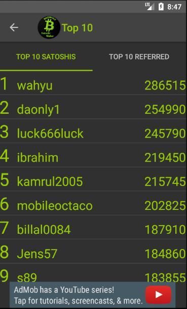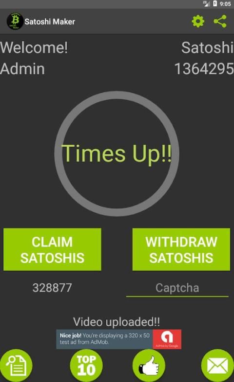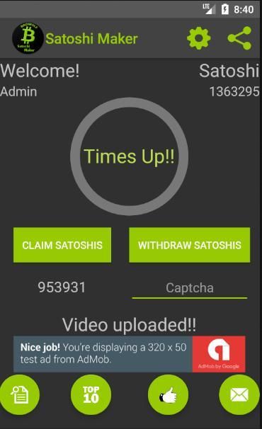 Satoshi pembuat membantu memenangkan satoshis gratis, hanya dengan men-download aplikasi dan membuat account Anda mulai untuk memenangkan setiap 15 menit dan Anda dapat menarik tas Bitcoins Anda.