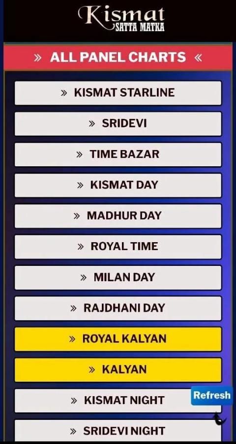 Satta MAtka KIsmat App provide latest satta matka results of Kalyan, Milan, Time, Kismat, Mumbai Power, Royal Kalyan, Royal time etc and Kismat Starline also shows panel and jodi charts of above.