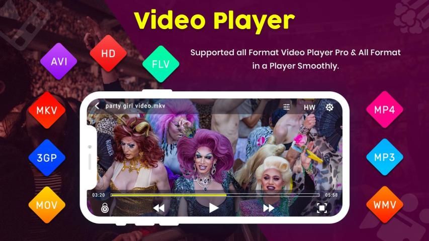 Best HD Video Player with the device default decoder for decoding, thus ensuring the speed and effectiveness of the video for you to enjoy smoother better quality videos. HD Movie Player supports almost all video formats including AVI , MP4 , WMV , RMVB , MKV , 3GP , M4V , MOV , TS , MPG , FLV etc, just depends on your device decoder.