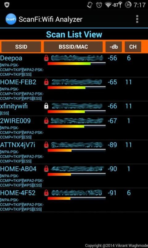 ScanFi adalah penganalisa jaringan nirkabel yang mengubah ponsel Android Anda menjadi perangkat pasif scanning. Sekarang memindai jaringan nirkabel Anda tanpa tersambung ke jalur akses, dapatkan semua detail bersama dengan representasi grafis keren.