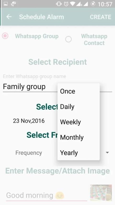 + Pesan Jadwal WhatsApp dengan cara Anda sendiri dengan pilihan ulangi harian, mingguan, bulanan, Weekdays, Tahunan.
