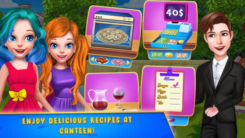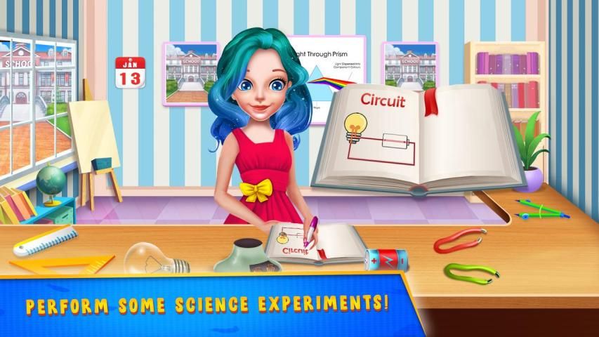 Make yourself ready for this awesome school game where you will learn a few things and you will also have a lot of fun accomplishing some tasks. The first day at school might be overwhelming for these two best friends, so your job will be to go through the day with them. You will begin your challenge at home because here is where you will find suitable clothing for this special day. Find the misplaced items from the room and help this beautiful girl get ready. Once the dressing up step is conquered you can take the girls at classes where your next activity awaits. This step implies cleaning the study classroom and repairing the damaged objects around. Throw away the garbage, and try to fix the broken items or to replace them if there's nothing you can to fix them. Follow the instructions and make this classroom an appropriate one for pupils to study and learn new things. You will also have to go to the canteen where you will make and serve delicious food to the others. Try to respect the recipe for each food you serve and make them delicious for your clients. The canteen menu will include drinks, pizza, burgers and other yummy meals. Serve the kids and collect the money for your plates. Now that you've clean and cook you can go to the science classroom where you are about to do some cool experiments. Learn something about electricity and try to pay attention to the chemistry lesson. Now you know exactly what it takes to have a perfect first day at school and you can continue your training by playing the game again.