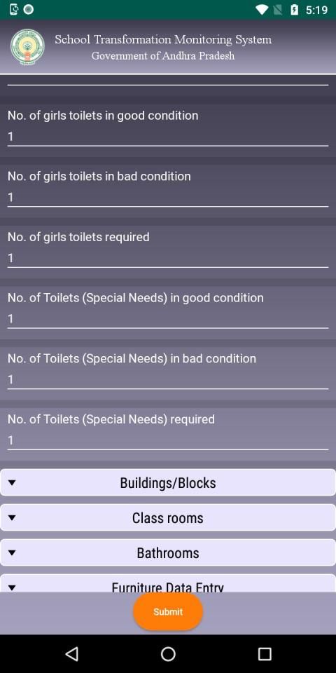 STMS mobile application is meant for monitoring and tracking the transformation of schools in the state of Andhra Pradesh. With the new Govt in place, steps has been taken to strengthen the education system in the state and STMS application is the first step towards it. Through this application, the Govt will come to know about the existing infrastructure of the school and will improve the facilities for a bright future of the students. This application has been equipped with Geo Fencing technology, which enables the Govt to make the process transparent.