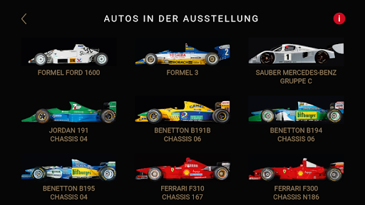 Schumacher. Aplikasi resmi menyajikan mobil balapnya dalam koleksi pribadi dengan berbagai cara. Mobil-mobil dibuat dalam 3D, Anda dapat menjelajahinya dengan memutar atau memperbesar dengan tepat. Setiap mobil menawarkan info lebih lanjut seperti riwayat atau suara mesin yang tepat. Bagian statistik terperinci dengan catatan paling penting menggambarkan karier pengemudi paling sukses dari Formula 1. Dalam wawancara video dari 2013, Michael Schumacher memberikan jawabannya atas pertanyaan yang mendefinisikan seorang juara.