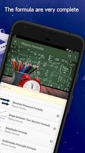 There are over 55 highly used chemistry formulas and 100 highly used physics formulas. All formulas are equipped with examples of problem and solution.