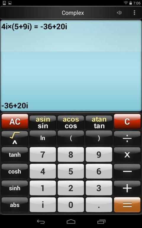 ► Complex Calculator - Di Kompleks Kalkulator Anda dapat menghitung trigonometri, hiperbolik dan logaritma nilai fungsi bilangan kompleks. Kompleks kalkulator juga menyediakan fungsi menghitung akar kuadrat, fungsi kekuasaan dan nilai-nilai absolut dari bilangan kompleks.