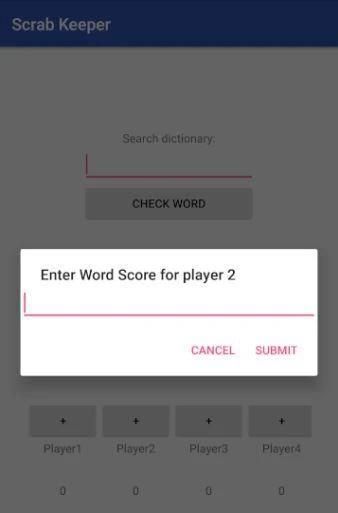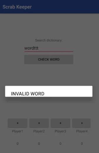 Aplikasi ini memberikan pengguna cara mudah untuk mempertahankan skor untuk scrabble dan memeriksa untuk melihat apakah kata-kata ada.
