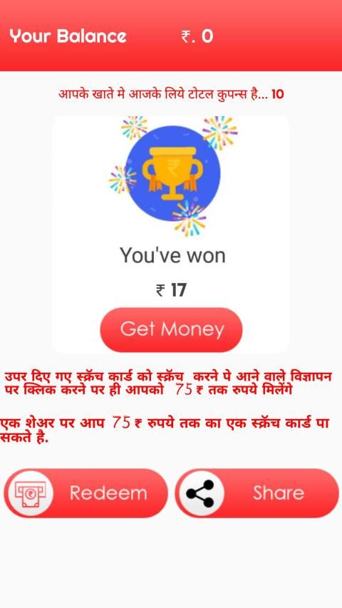This app allows you to earn money using Scratch card. You need to follow only step which is provided by app.
