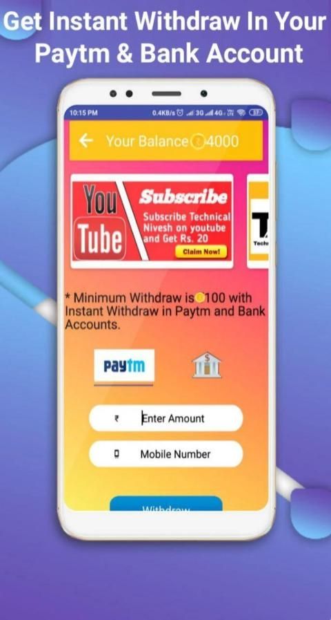 Earn Unlimited Money By Scratching Unlimited Scratch Cards & Withdraw Your Balance Instantly Or With in 24 Hours In Your Paytm Wallet & Bank Accounts. To Using This Application You Get Real Cash By scratching Cards Your Best Luck.